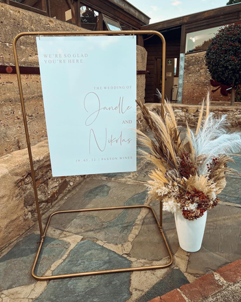 Our hire range has a variety of backdrops, signs and florals to use for your next event.